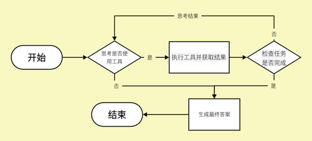 Repeat (循环):Agent 带着新拿到的结果,回到第1步,再次思考,直到任务完成。